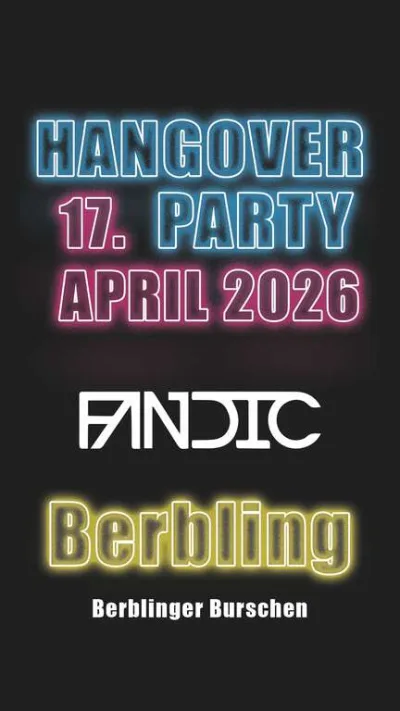 🔥 HANGOVERPARTY 🔥 ❗️Aufgepasst❗️ Der Countdown läuft ⏰ PFLICHTVERANSTALTUNG für Alle!!! 💥🧨 Merkt euch den Termin schon einmal, denn dieses Jahr wird ESKALATION 💯💨 🎉 Am 17. April 2026 geht es los! Sei dabei in Berbling und erlebe eine unvergessliche Nacht. 🍻🎶 Wir sehen uns an der Bar 🫵🏼🥳 Die Berblinger Burschen freuen sich auf Euch!