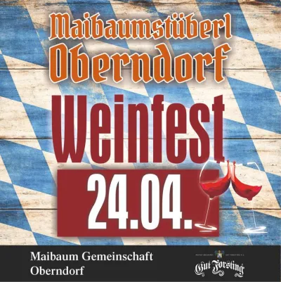 🍷 Weinfest in Oberndorf – das Maibaumstüberl Oberndorf lädt am 24.04.2026 zu einem stimmungsvollen Abend ein! Die vorhandenen Infos verweisen auf Oberndorf bei Ebersberg als Veranstaltungsort – perfekt für alle, die gesellige Stunden, gute Stimmung und feinen Wein lieben. 🎉 Der Titel ist Programm: Beim Weinfest erwartet euch ein gemütliches Fest mit besonderem Ambiente im Maibaumstüberl Oberndorf. Der Flyer macht sofort Lust auf einen entspannten Abend mit Wein, guter Gesellschaft und echter Feststimmung. 🍷🥂 Veranstaltet wird das Event von der Maibaum Gemeinschaft Oberndorf. Wenn ihr also auf der Suche nach einem schönen Ausgeh-Abend in Oberndorf bei Ebersberg seid, solltet ihr euch diesen Termin vormerken. 💃🕺 📍 Ort: Oberndorf bei Ebersberg 📅 Datum: 24.04.2026 Also schnappt euch eure Freunde und kommt vorbei, wenn in Oberndorf das Weinfest gefeiert wird – gemütlich, gesellig und mit bester Stimmung! 🎶
